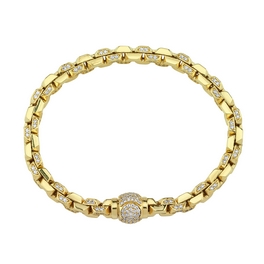 14 Ayar Altın Taşlı, Top Zincir Örgülü, Çiçek Sallantılı Döküm Bileklik
